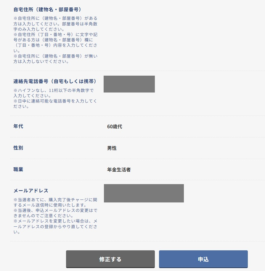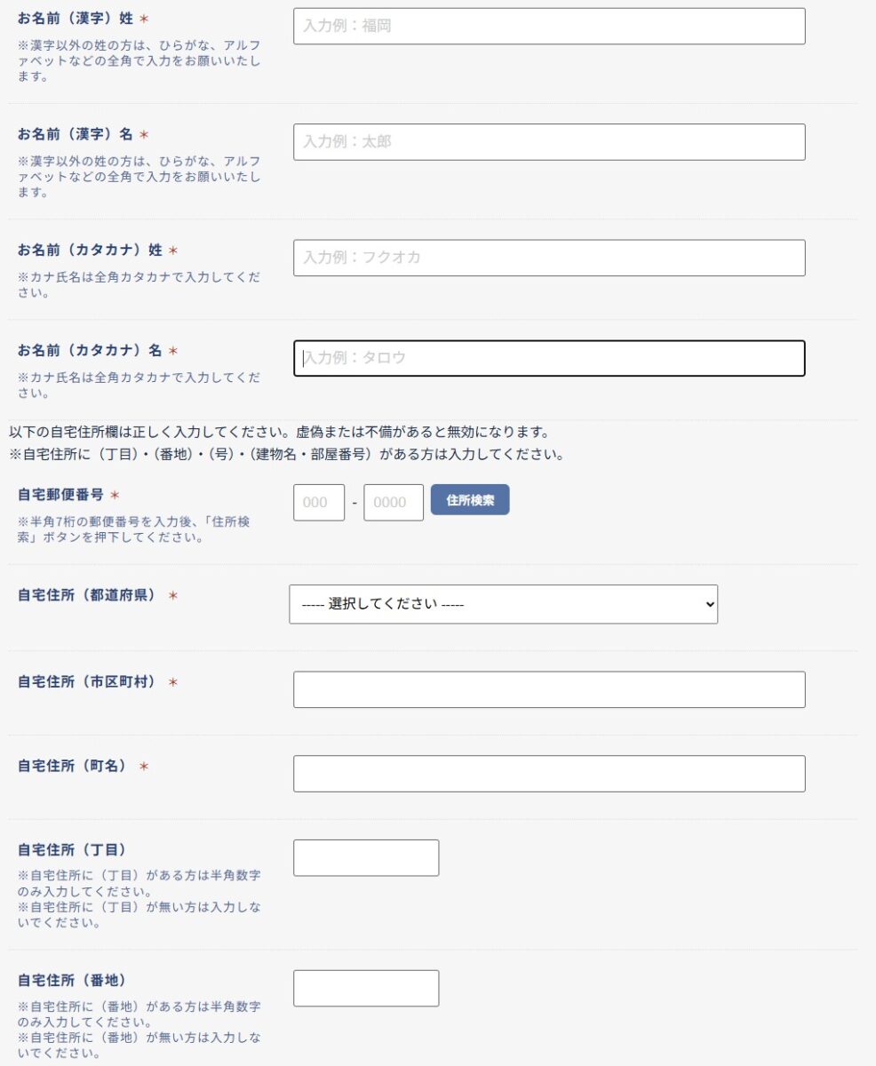 ここまで進めば名前住所電話番号などの個人情報入力へ進みます。