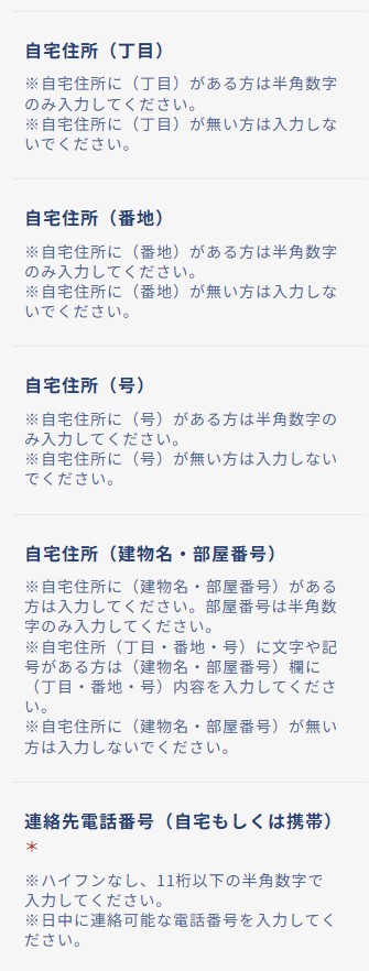 1-1(1番2号)の場合は、番地に1、号に2と半角数字のみで入力が必須です。