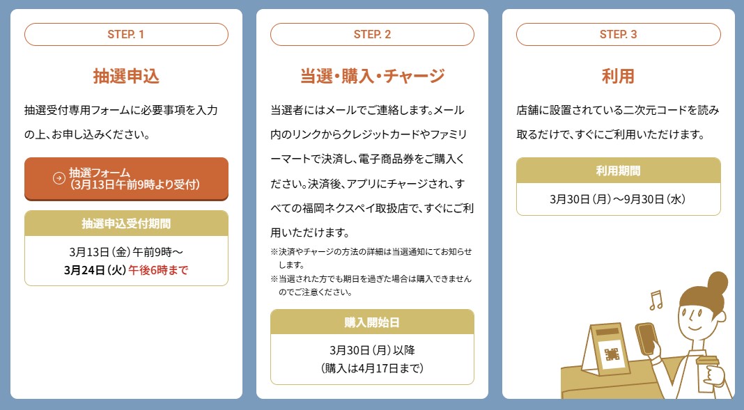 ネクスペイ福岡の抽選申込を、実際のスマホ画面を使って解説します。