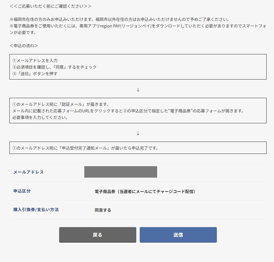 メールアドレス認証・申請受付が表視されます。メールを見に行きます
